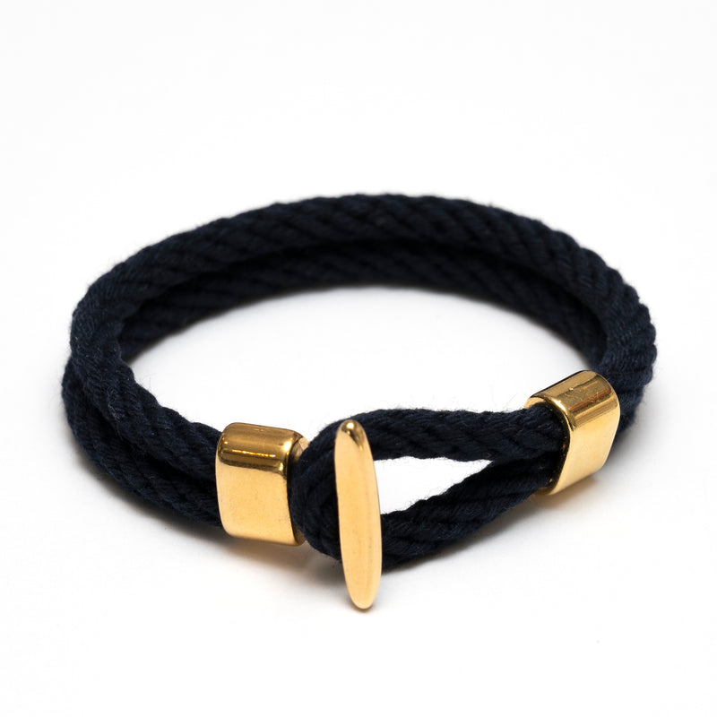 Nautical Navy Blue Red White Rope Gold Hook Clasp Bracelet